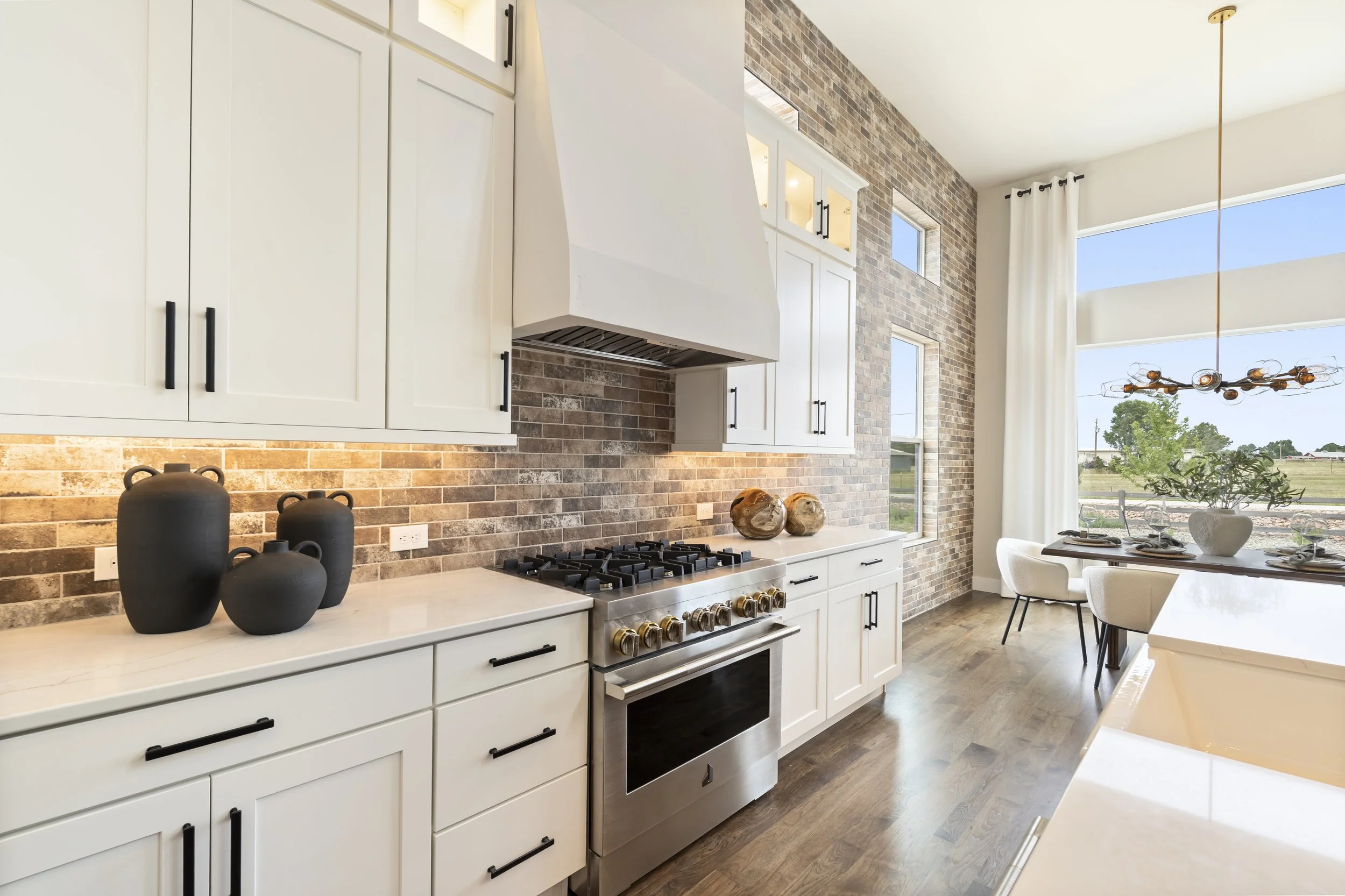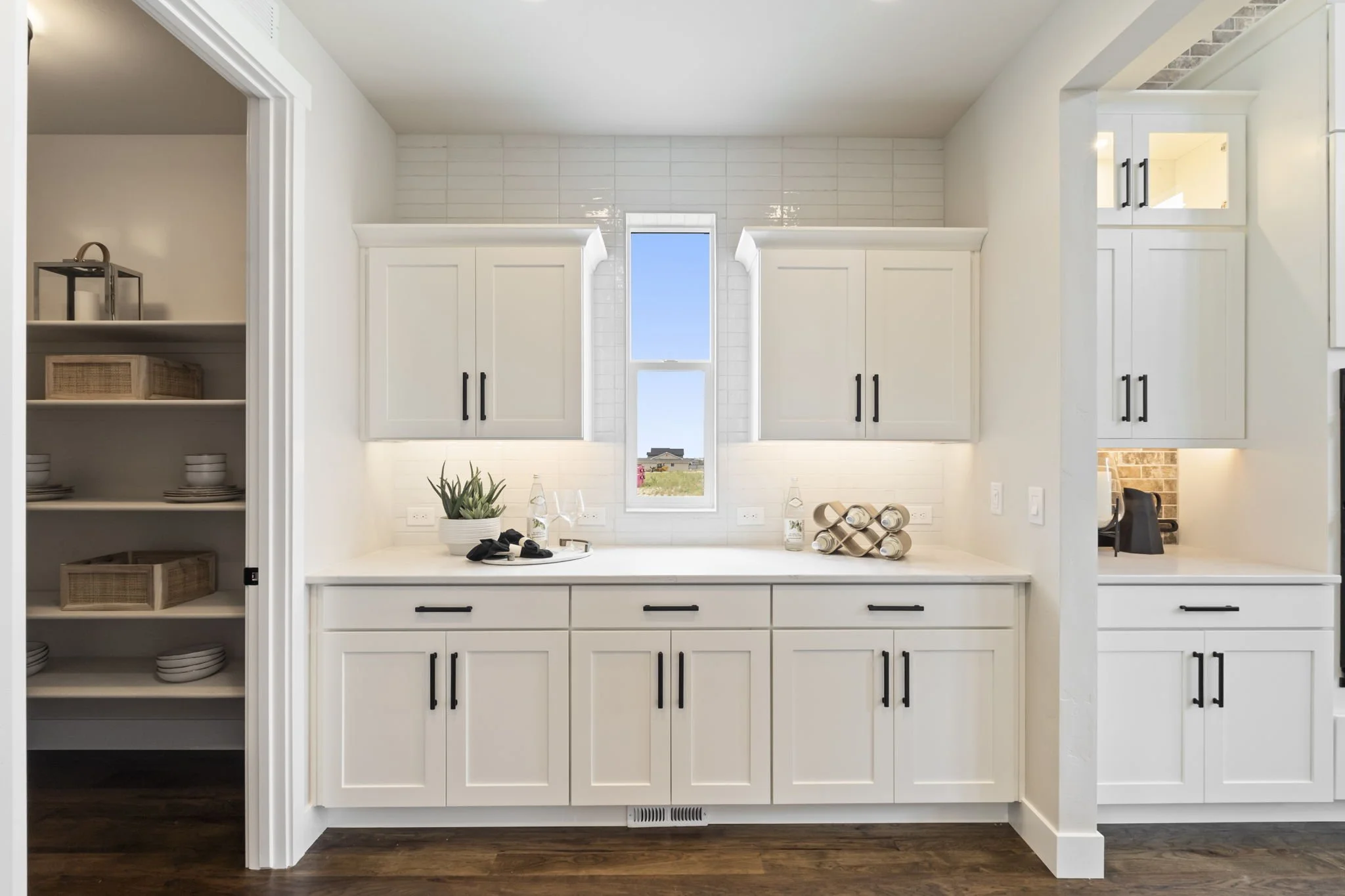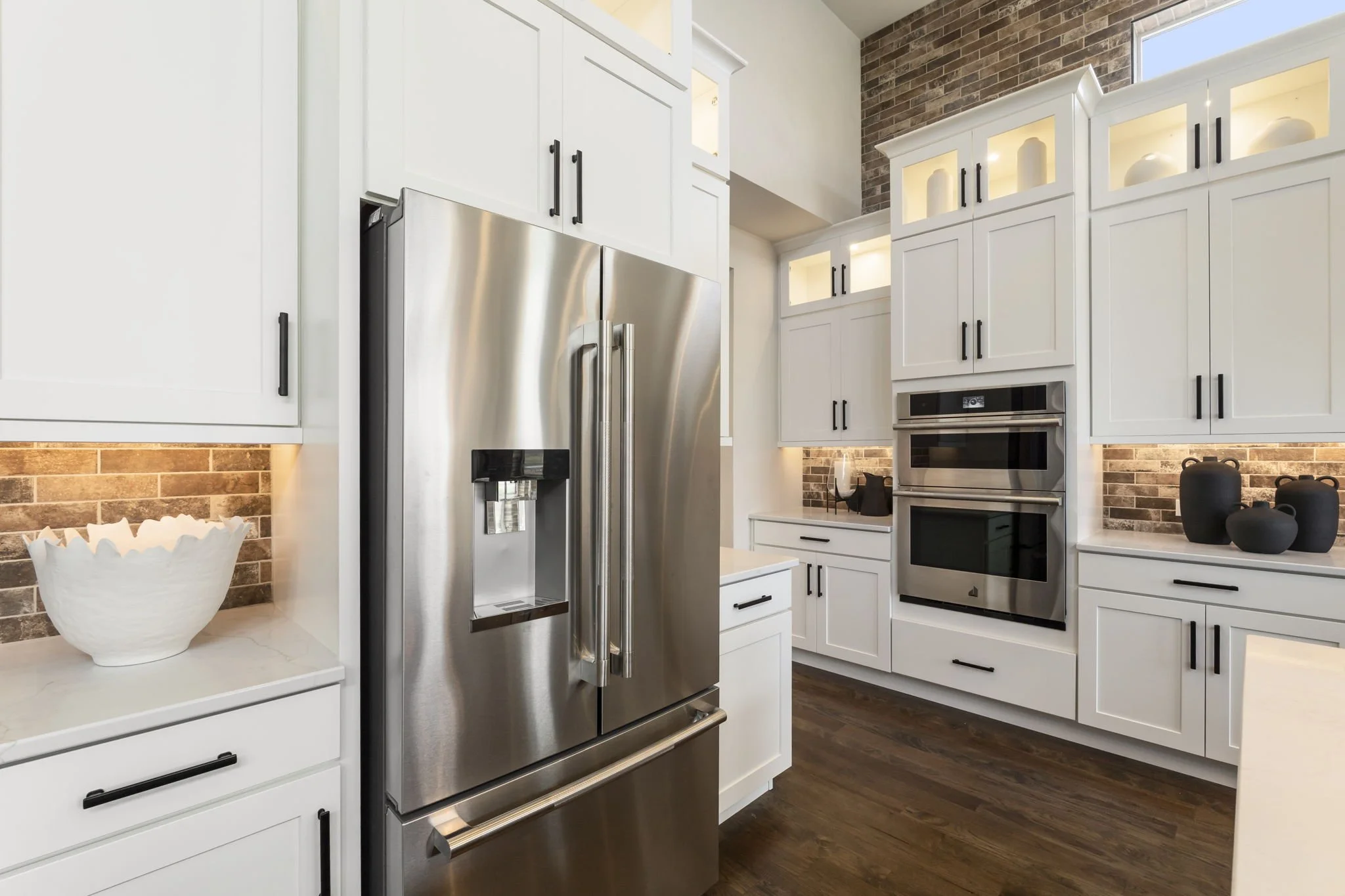 Cabinets: Tidwell Shaker II Door Style in Knotty Alder Pecan and Maple (HDF) Painted White