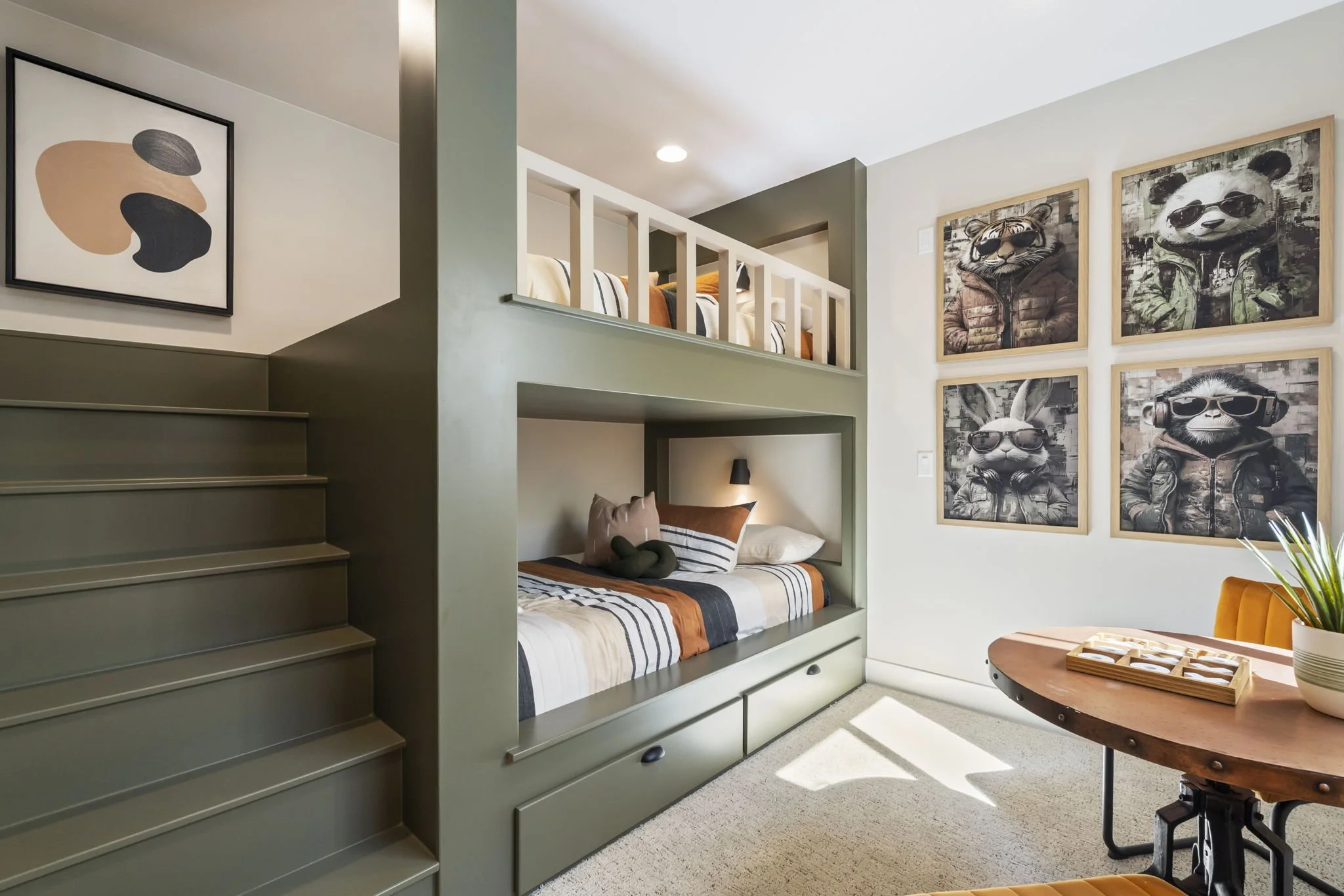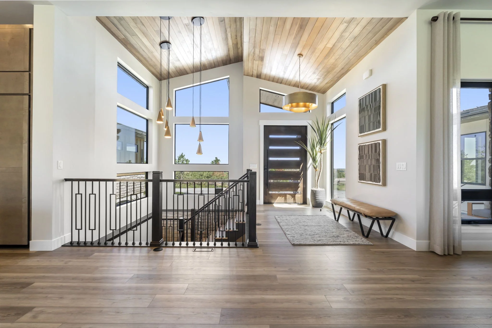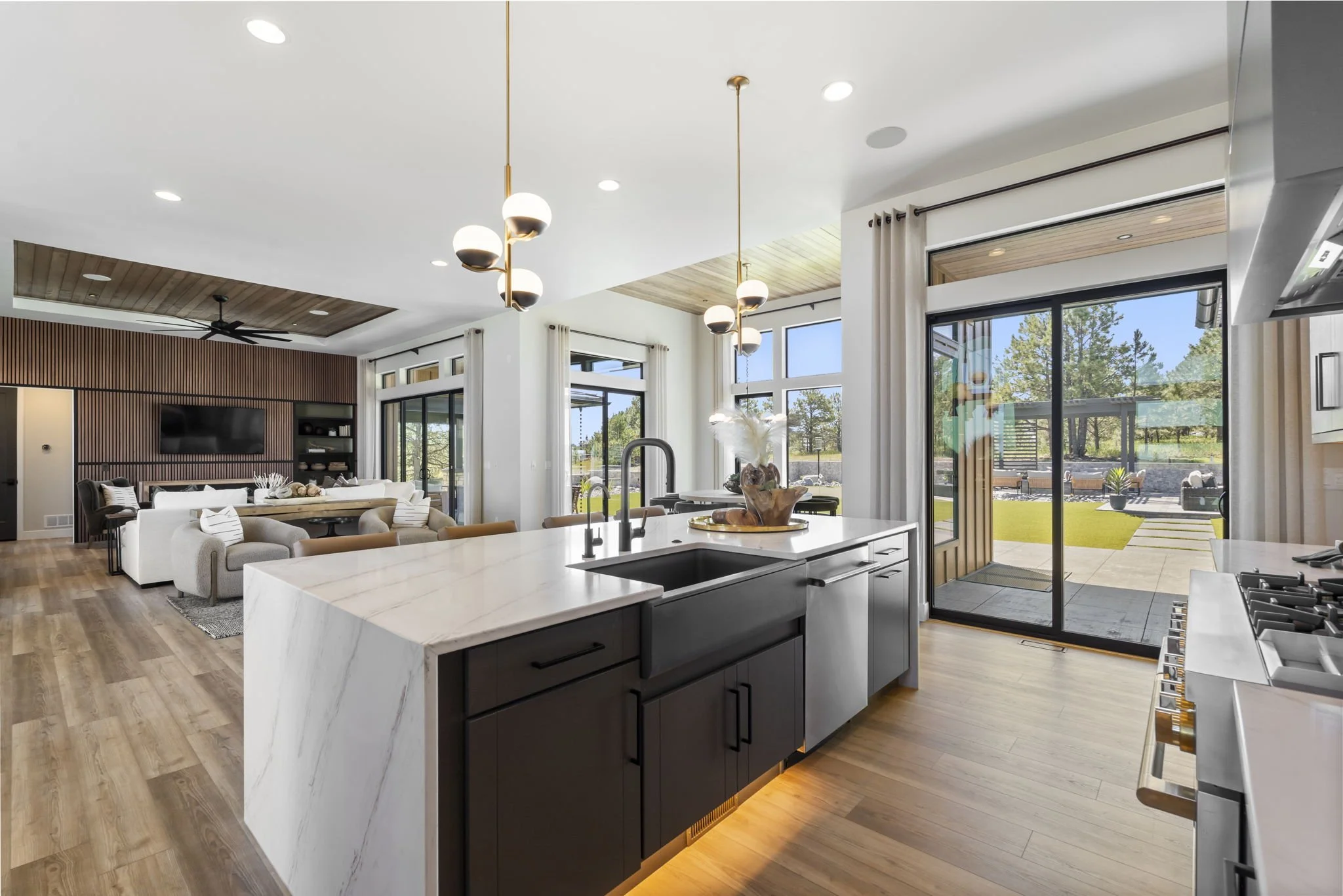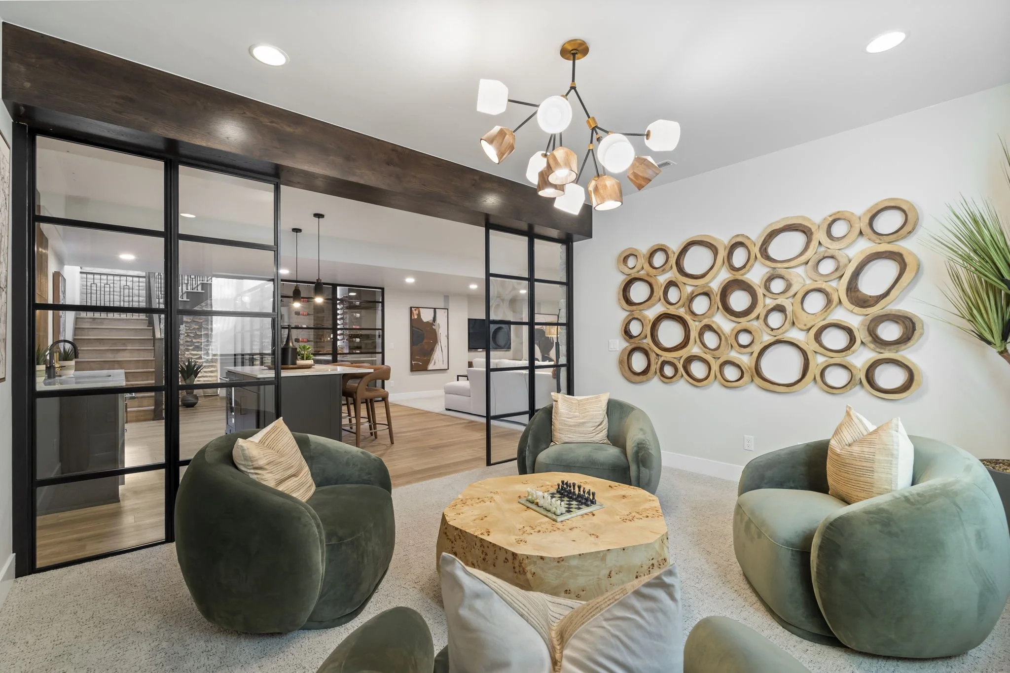 Custom Wallpaper, Lighting, Wood Slat Walls, and Window Treatments by KTI - Kimberly Timmons Interiors